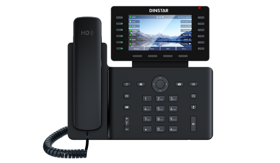 鼎信通达G500P是专为高端商务人士设计的多功能高清IP语音话机,外观大气,性能极佳,适用于各种IP语音电话系统。G500P系列采用5英寸可转轴SPI背光彩色液晶显示屏,最大分辨率为1280x720,适应多种使用环境,给用户带来良好的视觉效果并具有卓越的高清语音品质以及丰富的电话系统呼叫功能,可充分满足用户的不同需求。